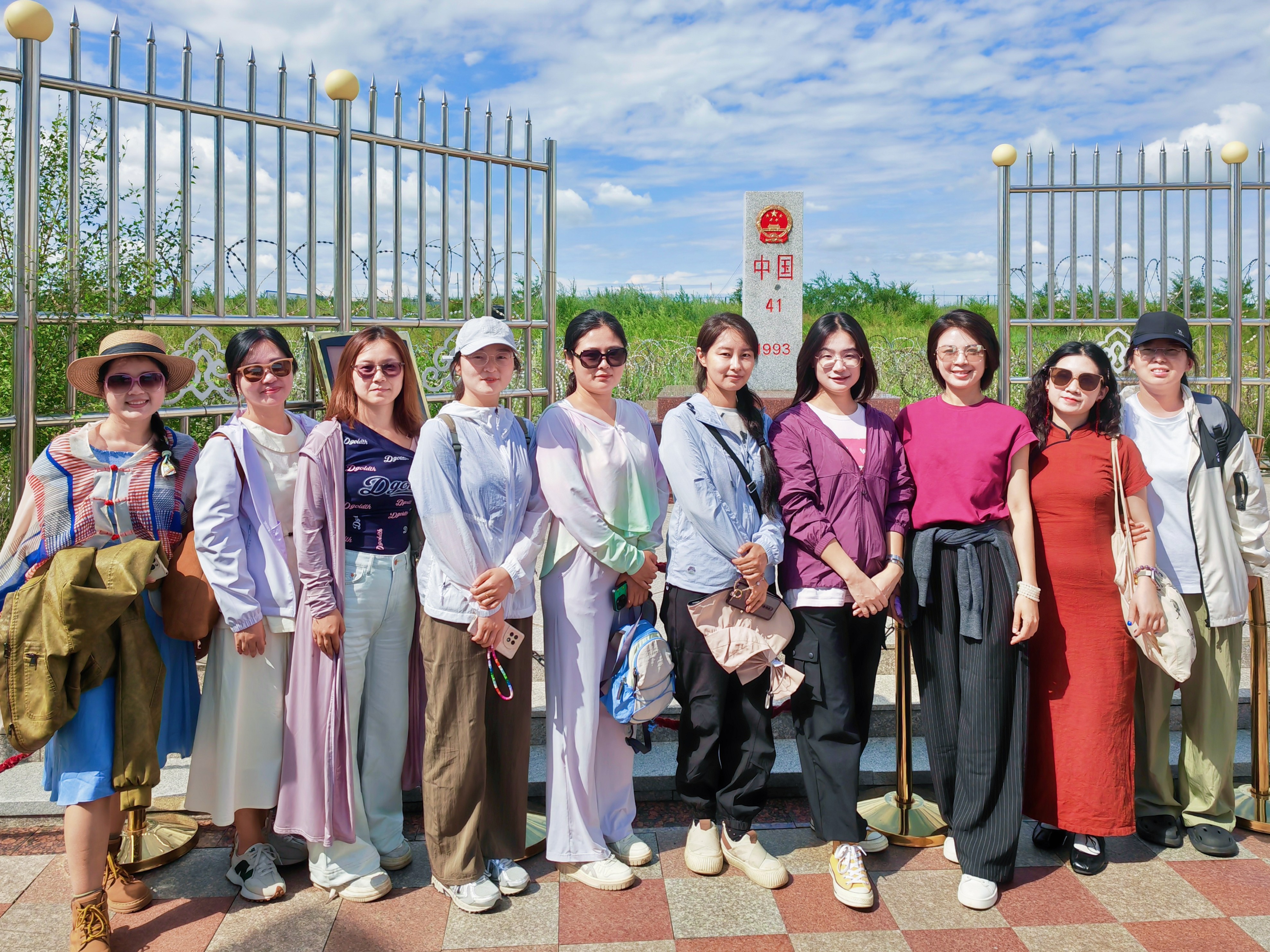 在中俄41号界碑前,考察团教师们庄严肃立。界碑上清晰的国徽与编号,不仅是国家领土主权的庄严象征,更是无数先烈用生命守护的尊严印记。驻足凝视间,边疆军民的守土事迹如在眼前。他们用年复一年的坚守,生动诠释着“家是最小国,国是千万家”的深刻内涵。