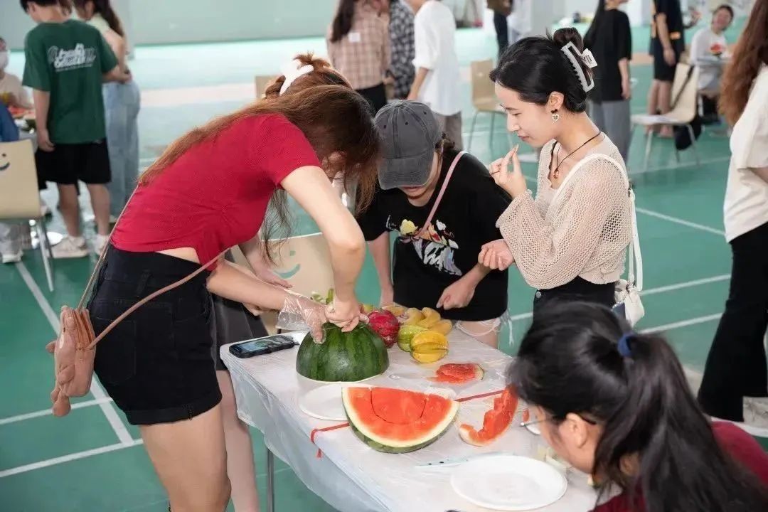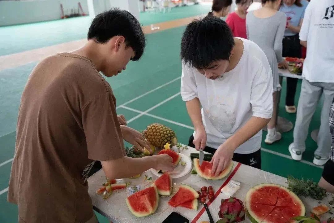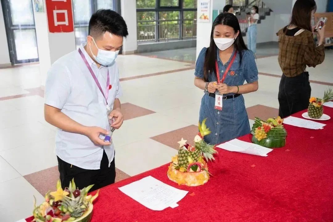 为了丰富学生课余生活,活跃校园气氛,培养学生的创新思维,发掘大学生的动手能力和增长创新意识,同时通过开展丰富多彩的活动来弘扬创新精神,体现大学生朝气蓬勃、积极向上的精神状态,北海艺术设计学院于5月7日15:30在西区食堂三楼举行“瓜果飘香,一起消消乐”水果拼盘设计大赛。