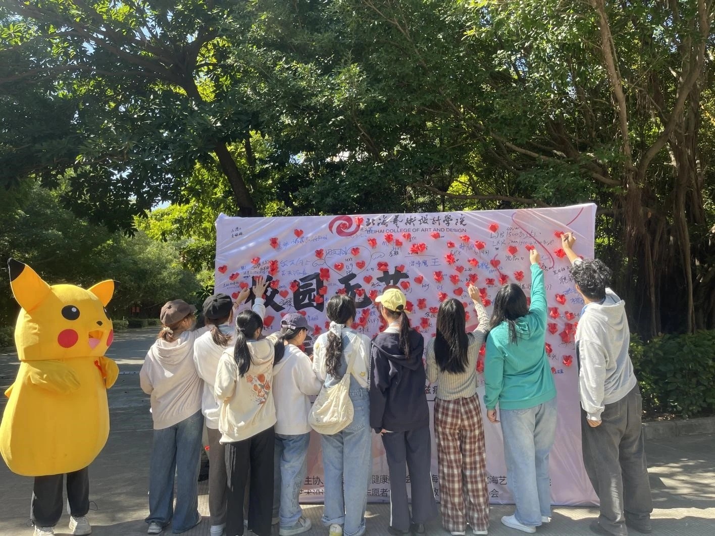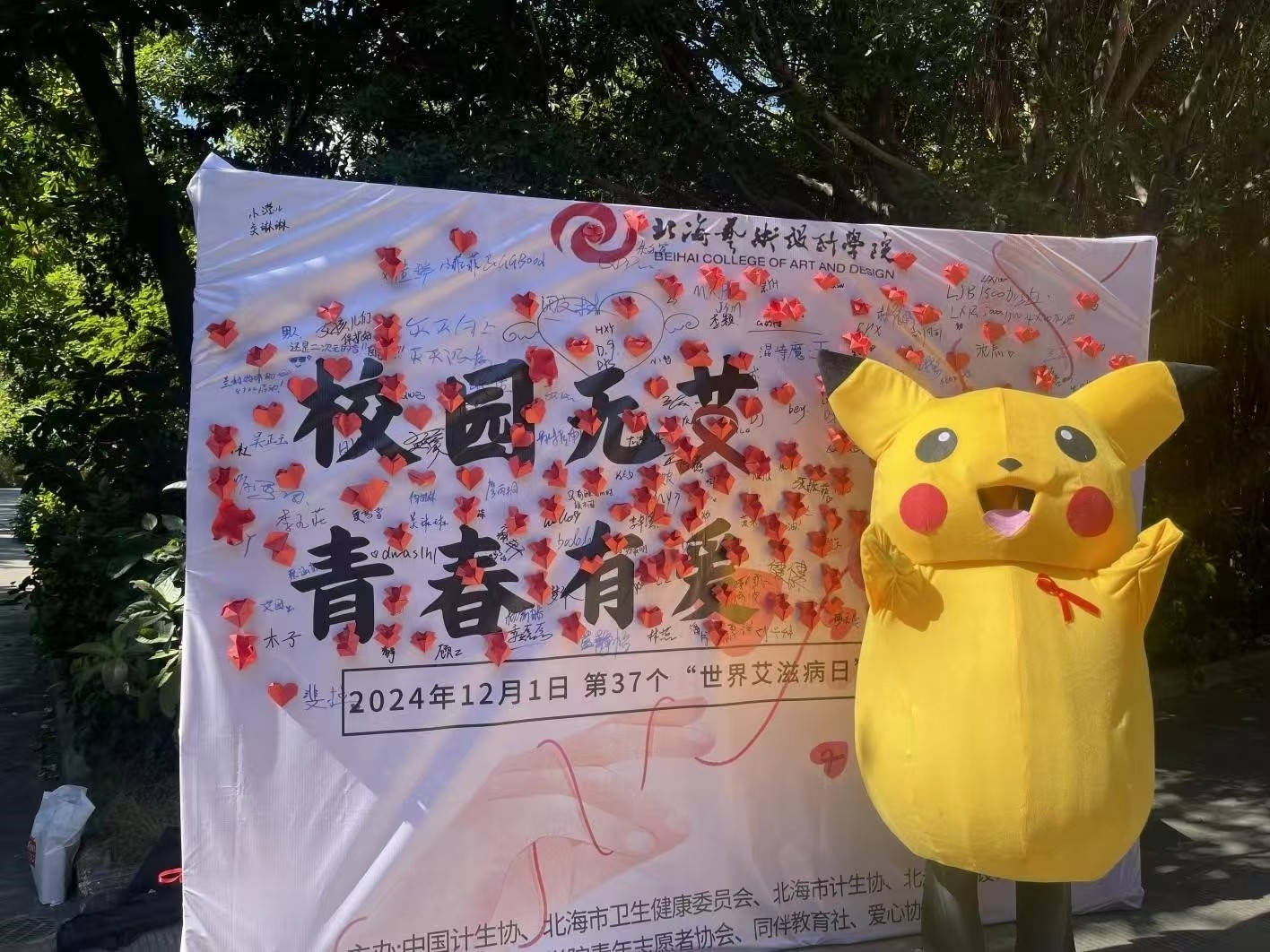 同学们纷纷拿起笔在防艾主题签名墙上签名并粘贴爱心折纸,密密麻麻的签名印证了同学们携手共建健康校园的决心,寓意着我们为预防艾滋各献上一份微薄之力!