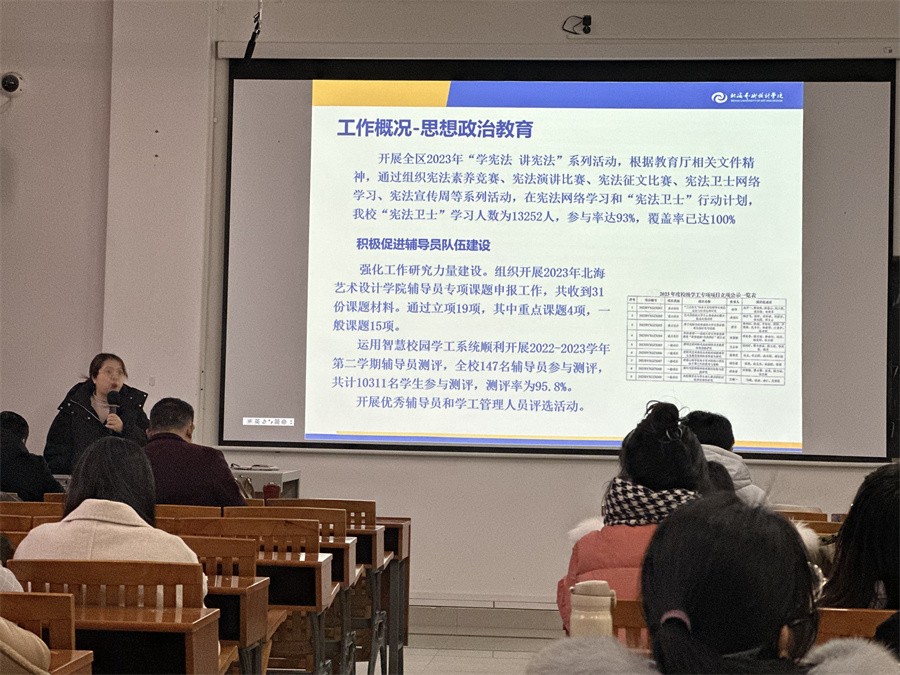 学工处处长班媚就本年度学生思想政治教育、日常管理、资助工作、心理健康教育、学生公寓管理工作方面开展报告。她针对学生工作的亮点、成效、存在的问题以及采取的措施进行深入总结,为2023年度的学生工作进行了全面评估,明确了新一年学生工作的发展方向和具体计划。