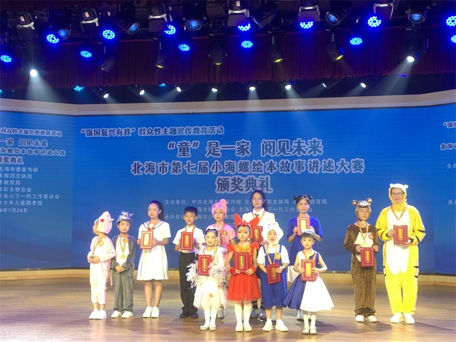 近日, 由中共北海市委宣传部、北海市旅游文体局、北海市教育局、北海市妇女联合会及北海市关心下一代工作委员会联合主办,北海市少年儿童图书馆承办的“童”是一家 阅见未来——北海市第七届小海螺绘本故事讲述大赛圆满落幕。经过激烈角逐,我校教育学院2023级学前教育专业马杨燕凭借出色的专业表现脱颖而出,荣获成人组一等奖;教育学院教师陈美霖荣获优秀组织者奖;学校获“优秀组织单位奖”。