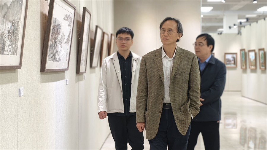 随后,王少军教授作为展览学术主持发表了讲话。他对出席此次开幕式的领导、贵宾表示欢迎和感谢,并指出每一次的写生实践课,都是一次引导学生发现并感受身边美的机会,此次写生活动不仅是一次学科建设中的实践课程,更是一次让教师和学生共同走进自然,感受美术领域魅力的难得机会,学校拥有得天独厚的自然景观和人文环境,为写生实践提供了丰富的素材和灵感。在谈到教学理念时,他表示,教师团队希望通过此次课程,传达给学生对大自然的敏感性和对美的敏感度,希望学生能够真正感受到身边的美,唤醒对自然和人文之美的感知。