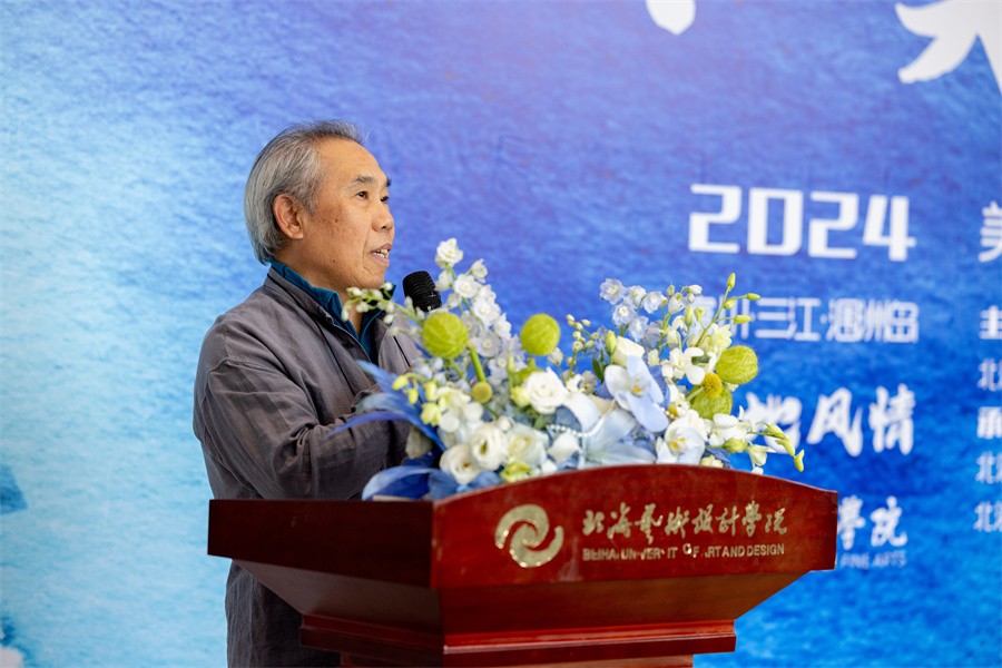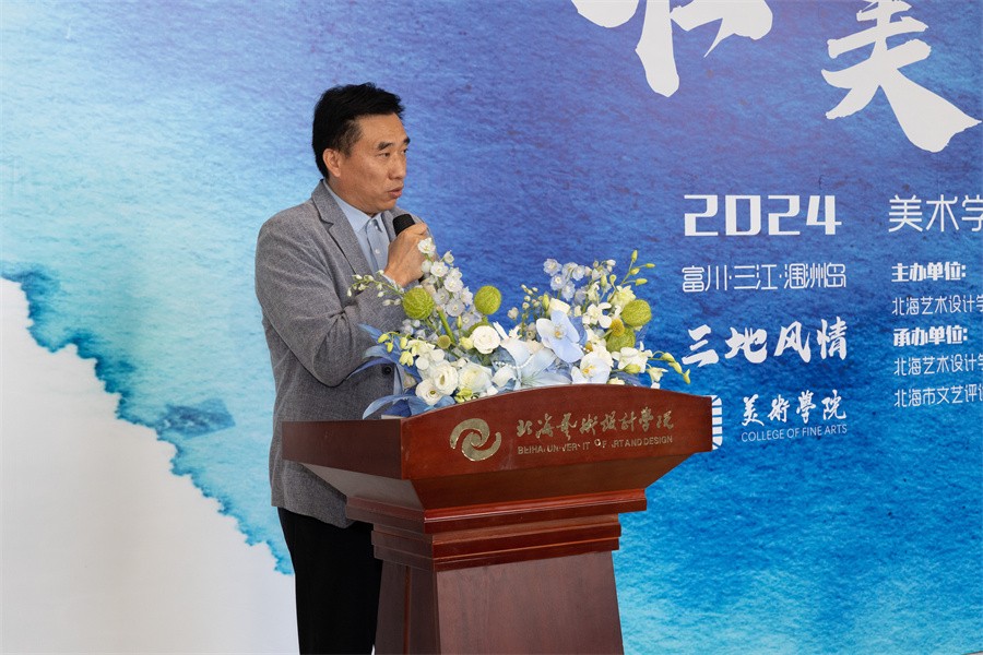 陶立阳副校长在讲话中表示,一直以来,美术学院积极贯彻党的二十届三中全会精神和党的教育方针,立足民族文化遗产,致力于推动广西文化的繁荣。广西这片富有魅力的土地,为美术学院师生提供了无尽的创作灵感,广大师生用画笔充分展现了广西各地独特的美。他强调,美术学院在教学中要始终坚持以人民为中心的创作导向,立足本土,提升创新能力,同时推动科学与艺术的深度融合,努力取得更加显著的成果。
