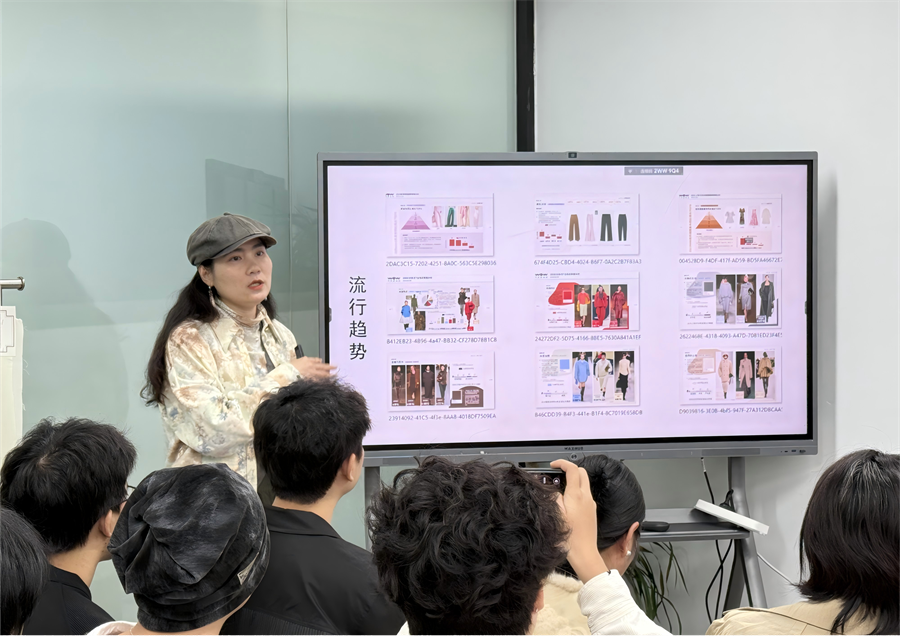 服装学院调研团队首访深圳星潮热点传播股份有限公司。该公司CEO李冰以“趋势-设计-品牌”为主线,剖析市场动态与商业逻辑;T台趋势总监Momo结合T台环境案例,演绎服装设计与场景适配的实战技巧。学生们通过互动问答、研读含面辅料小样的趋势手册,直观掌握服装细节工艺与趋势落地方法,为后续调研奠定行业认知基础。