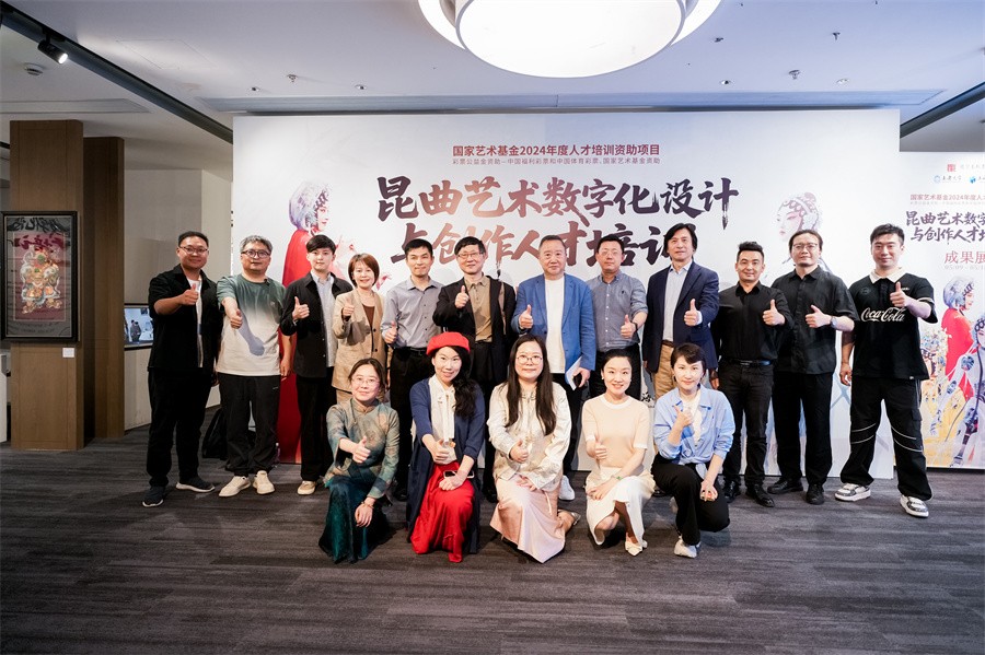 据悉,本次成果展是国家艺术基金2024年度艺术人才培训资助项目“昆曲艺术数字化设计与创作人才培训”的重要组成部分,该项目由上海大学主办,上海大学上海电影学院承办,依托电影特效技术省部级研究机构——上海电影特效工程技术研究中心实施推进。项目面向全国遴选出31位来自戏剧戏曲、美术设计、影视、数字技术等领域的优秀学员,围绕昆曲艺术与数字技术的深度融合,于2024年8月1日展开了为期31天的集中培训。培训内容涵盖昆曲艺术理论、戏画、服饰、音乐、传播及其与动作捕捉、三维扫描、AI影像生成、数字影像合成等前沿技术的融合实践,致力于构建昆曲艺术的数字影像资产库,培养“昆曲+科技”的复合型人才,进而为昆曲艺术的传承打造一套行之有效、行稳致远的高科技体系。本次展览正是这一项目成果的集中呈现与立体化表达。展览汇聚了项目组倾心打磨的百余件优秀作品,通过数字影像、文创实物、裸眼3D多媒体展示等多元形式,立体展现了昆曲艺术与数字技术交汇的丰富成果。