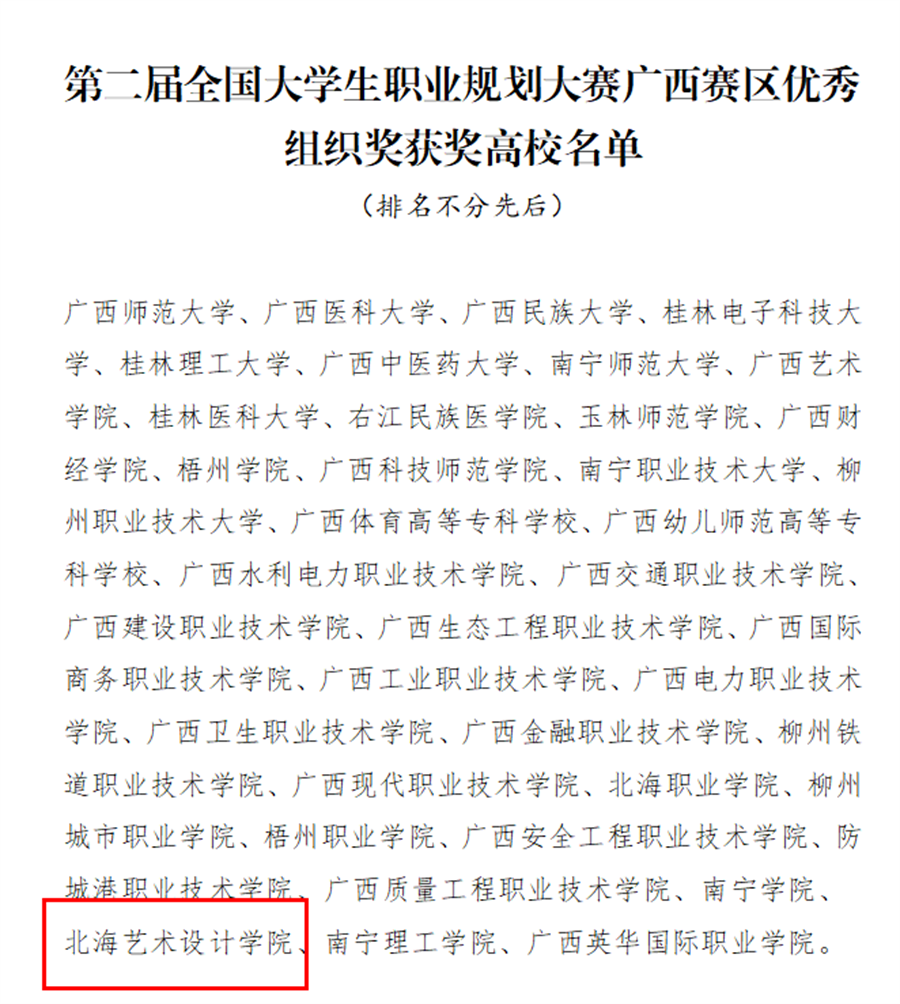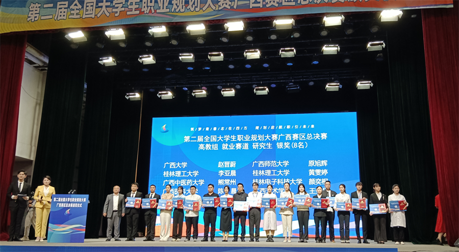 近日,从自治区教育厅《关于公布第二届全国大学生职业规划大赛广西赛区获奖名单的通知》(桂教学生〔2025〕5号)文件获悉,我校学生获广西区赛1银、3铜、1优秀的佳绩,学校获优秀组织奖。