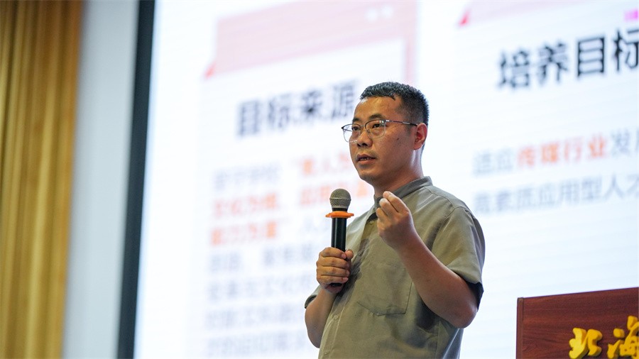 播音与主持艺术教研室主任熊彪全面阐述了该专业的专业特色与成长路径。播音与主持艺术专业核心目标为培育具备“采写编摄评说播”综合能力的高素质应用型人才,课程体系遵循“基础—技能—实践—跨专业融合”递进逻辑,并融入课程思政与校企合作特色。他鼓励新生充分利用“北海+北京”双城资源深耕专业实践,在专业领域持续深耕,以扎实硬实力成长为传媒行业的优秀从业者。