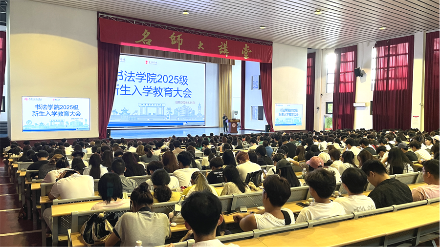 为引导新生适应大学环境、确立学业规划并强化安全意识,9月21日,书法学院于西校区大礼堂组织开展2025级新生入学教育大会,围绕专业前景、安全意识、规章制度、理想信念、学业导航等多个模块展开,帮助新生完成心理转型与角色转换,快速融入校园生活。学院领导、全体教师及2025级全体新生参加会议。