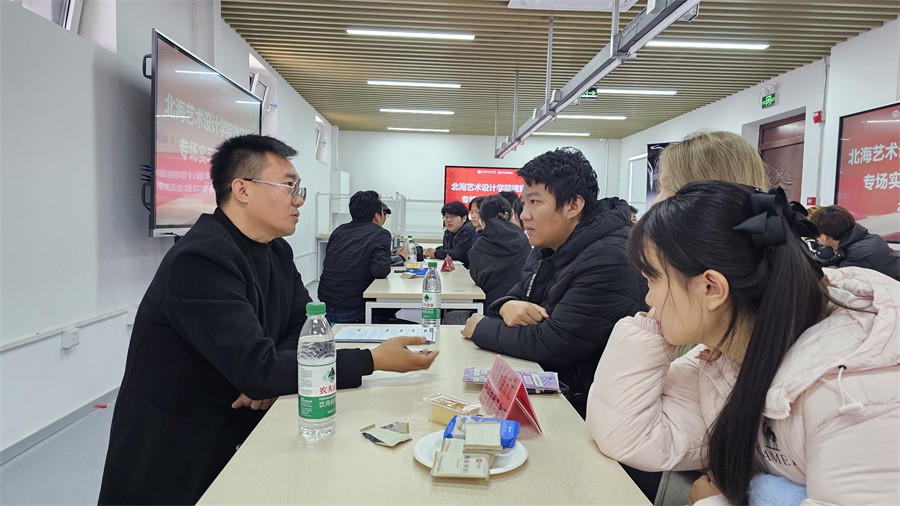 企业宣讲环节是本次活动的核心亮点,五家参会企业结合自身业务特色与行业发展趋势,为学子带来干货满满的分享。北京三匠建筑工程设计有限公司联合创始人张浪从建筑设计行业现状、核心业务布局出发,详细解读环境艺术设计岗位的能力要求与职业成长路径,并用实际项目案例直观呈现行业实践标准;北京聚点科技有限公司招聘经理刘佳在宣讲中以数字媒体行业发展新趋势为切入点,深度解析了聚点科技文化创意与内容制作领域的核心布局与人才需求,针对学生关切的职业发展问题,刘佳经理明确了企业完善的薪资福利体系与清晰的晋升路径。视频剪辑、编导等创作类岗位可进阶为创意总监、内容负责人,达人运营岗位可发展为账号负责人、运营总监,同时企业定期组织行业前沿技术培训、跨项目实践交流等成长支持,助力学子快速实现从校园到职场的平稳过渡;北京檐睿设计工作室、北京一墨一设计咨询事务所及北京予舍方元家具科技有限责任公司代表则分别围绕室内设计、景观规划、家具设计等细分领域,分享了行业前沿理念与企业人才培养体系,引发学子广泛关注。宣讲结束后,企业嘉宾在双选会答疑区,为学子预留专属咨询时间。