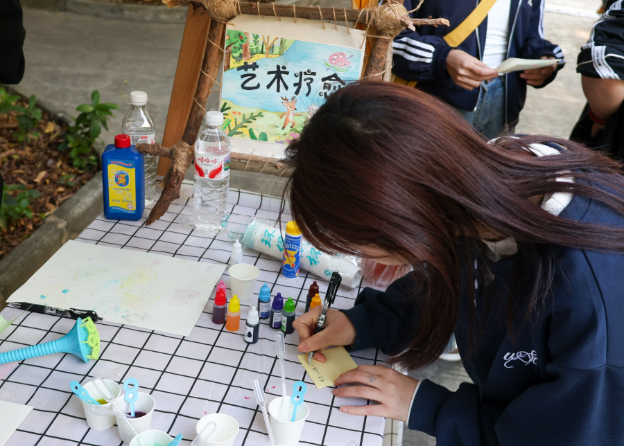 12月30日下午,由我校大学生创新创业训练计划项目“美的历程——艺术疗愈公益项目”团队组织的“对所有的烦恼说拜拜”主题活动,在西校区伦理楼前顺利开展。现场氛围轻松愉悦,吸引了众多学子踊跃参与。