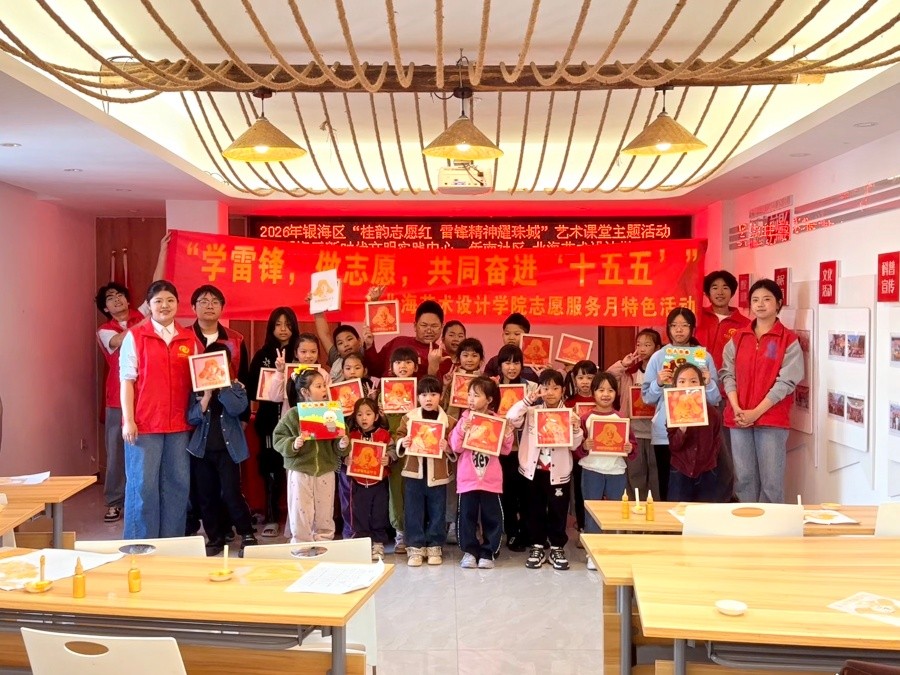 为弘扬新时代雷锋精神,紧跟国家“十五五”规划,3月14日至15日,北海艺术设计学院校团委联合侨南社区、银海区新时代文明实践中心,成功举办“青春践行雷锋精神,爱心支教暖童心”特色志愿服务支教活动。活动创新融合少儿口才宣讲与雷锋主题手工创作,通过“红色言传”与“匠心实践”双线并行的方式,让雷锋精神在青少年心中落地生根、浸润成长。