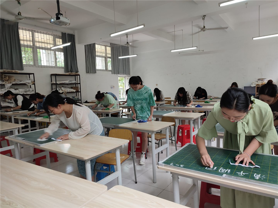 比赛中,同学们粉笔轻舞飞扬,或顿挫有致,或苍劲有力,或清秀雅致,一笔一划,一行行整齐的粉笔字跃然于面前,展示出较强的专业能力。