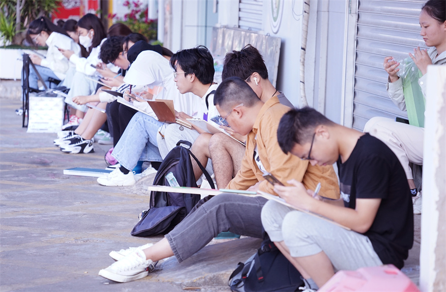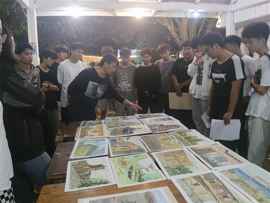 同学在绘画写中,一起去描绘涠洲岛的美景、美事。早晨,大家拿起手中的画笔刻画着眼前美好的风景;黄昏,师生一起交流学习,点评当天的绘画作品,探讨绘画的乐趣。这不仅提高了同学们的学习热情,也促进了同学之间的沟通,更增进了师生之间的感情。