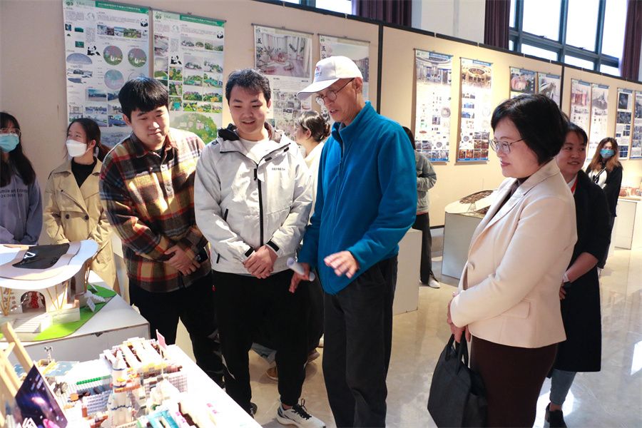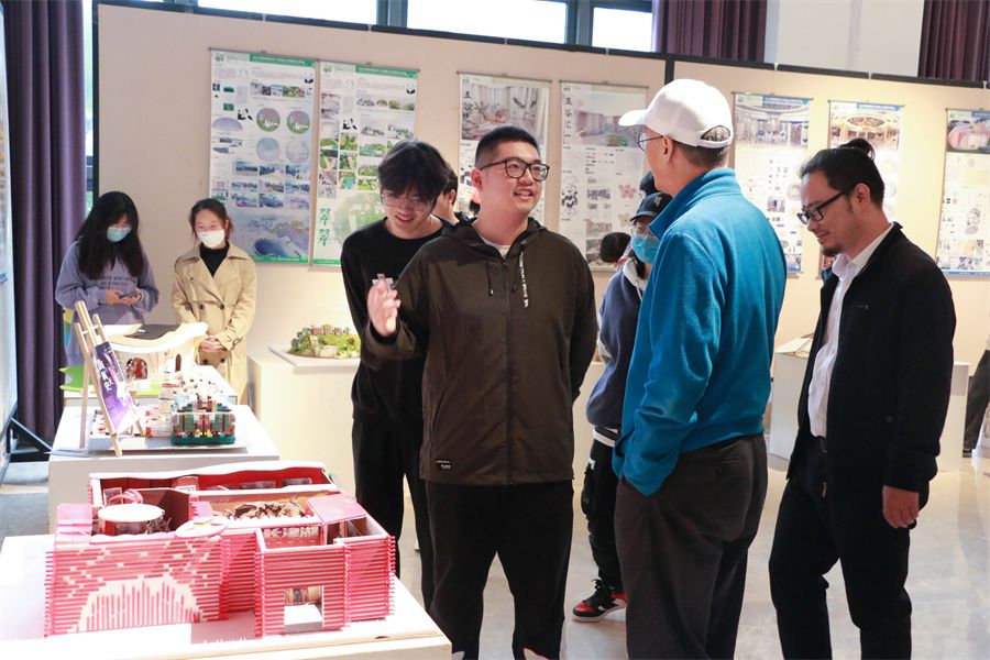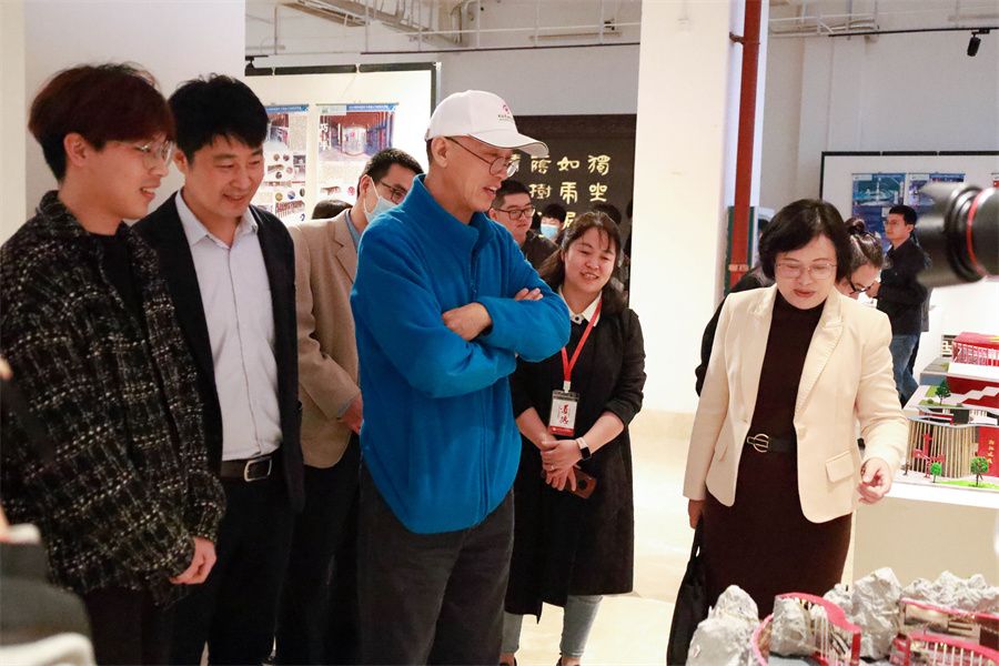 观展过程中,学校领导与教师、同学们亲密交流,共同以直观的视觉体验领略各个优秀作品中所蕴含的设计艺术美感和时代精神,本次《展示空间设计》课程思政作品,是建筑与环境艺术学院将思政文化与展示空间设计融合的又一个优秀成果,更是在教育道路上的又一次重要探索。