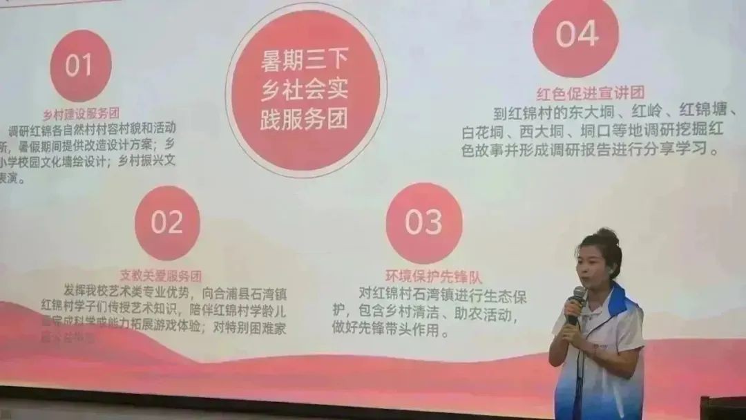 校团委杨美琪老师为参加暑期“三下乡”社会实践活动同学们讲解活动流程。