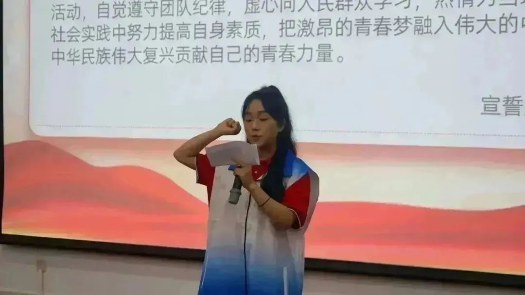 学生代表陈锘尧进行发言,她首先代表所有志愿者对支持本次“三下乡”活动的领导和老师表示感谢。然后,学生代表带领全体志愿者宣誓,作为伟大时代的见证者和奋斗者,我们应当有“行则将至”的决心和“做则必成”的信心,在奋进新征程中展现青年担当贡献青春力量。努力将知识积累、社会观察等成果转化为实实在在的建设性意见和举措。
