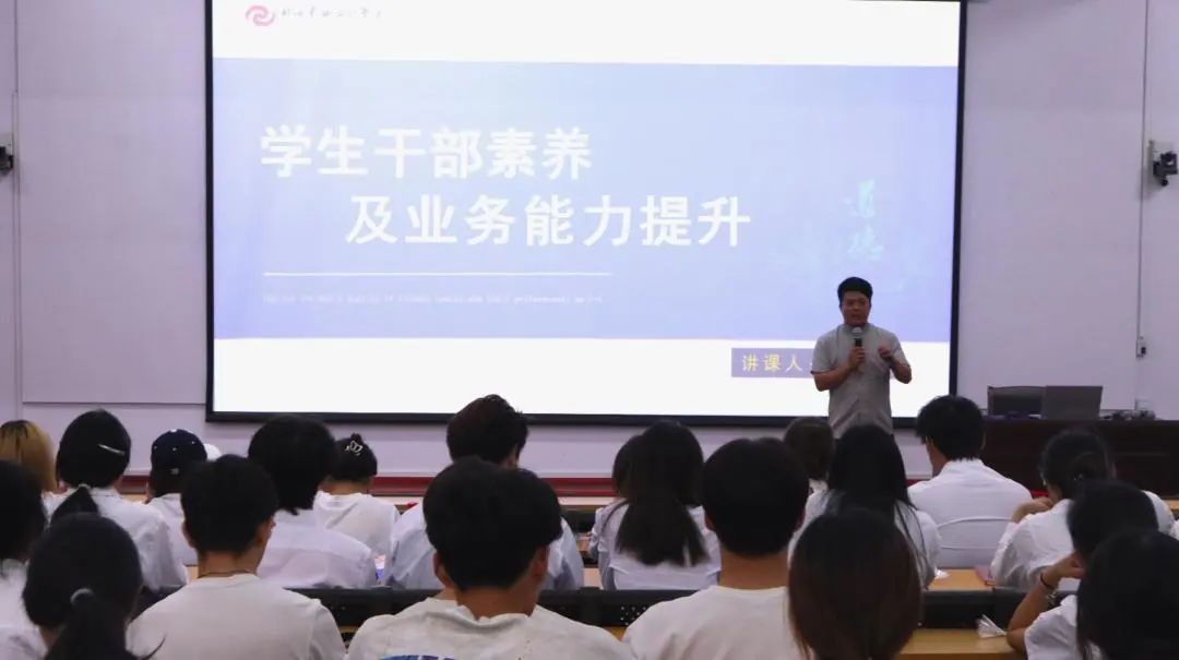 第二讲,校团委书记唐良春为学员们带来《学生干部基本素养及业务能力提升》专题课程。围绕学生干部的使命与责任展开深刻阐述,强调学生干部不仅是校园活动的组织者,更是服务同学、传递正能量的桥梁与纽带。学干要明确以奉献精神为核心,树立正确的价值观与服务意识,以更高的标准要求自己。