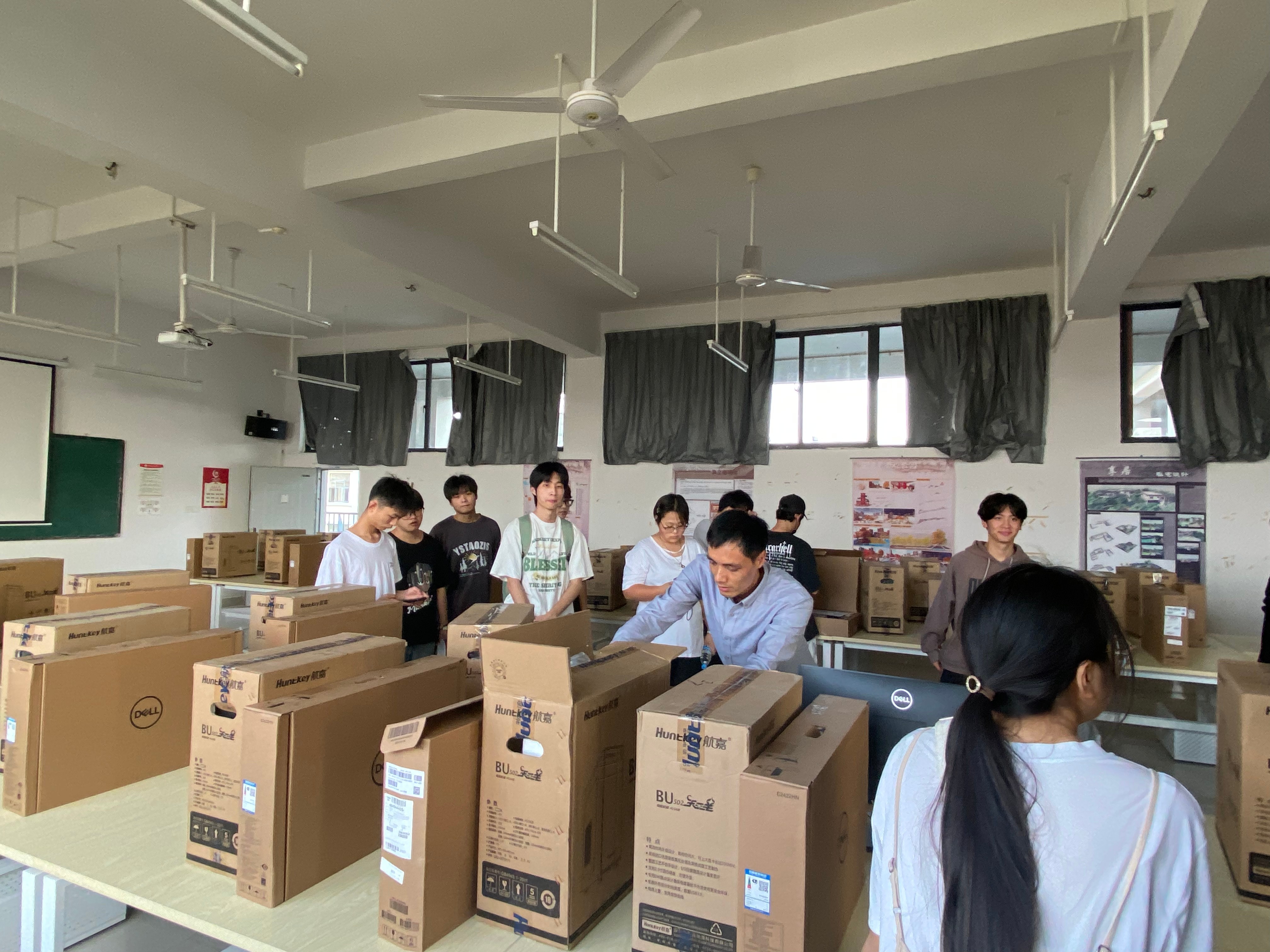 学校西校区公德楼,伦理楼新增20个电子教室,东校区综合楼新增4个电子教室,共960台新电脑,为了电子教室能尽快投入使用,设备与信息处老师加班加点安装新电脑,接入网络,安装系统、机房管理软件,为学校教育教学积极贡献自己的力量。(劳大耀/摄)