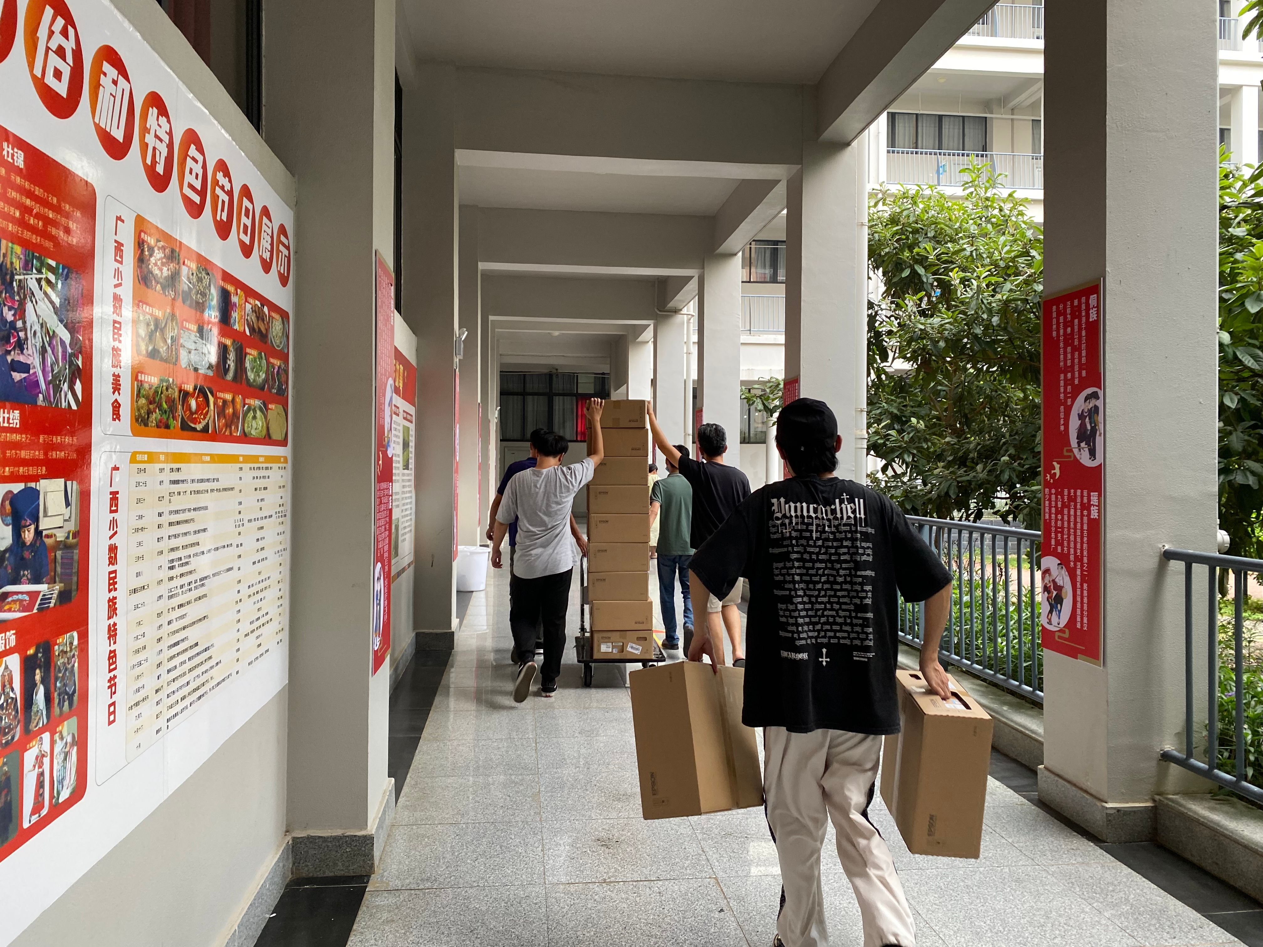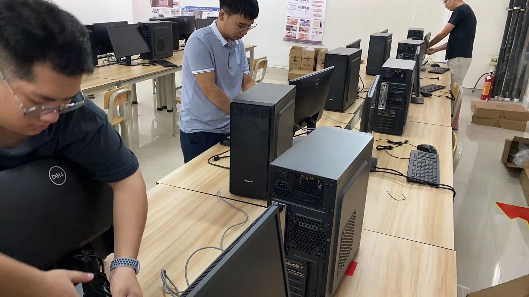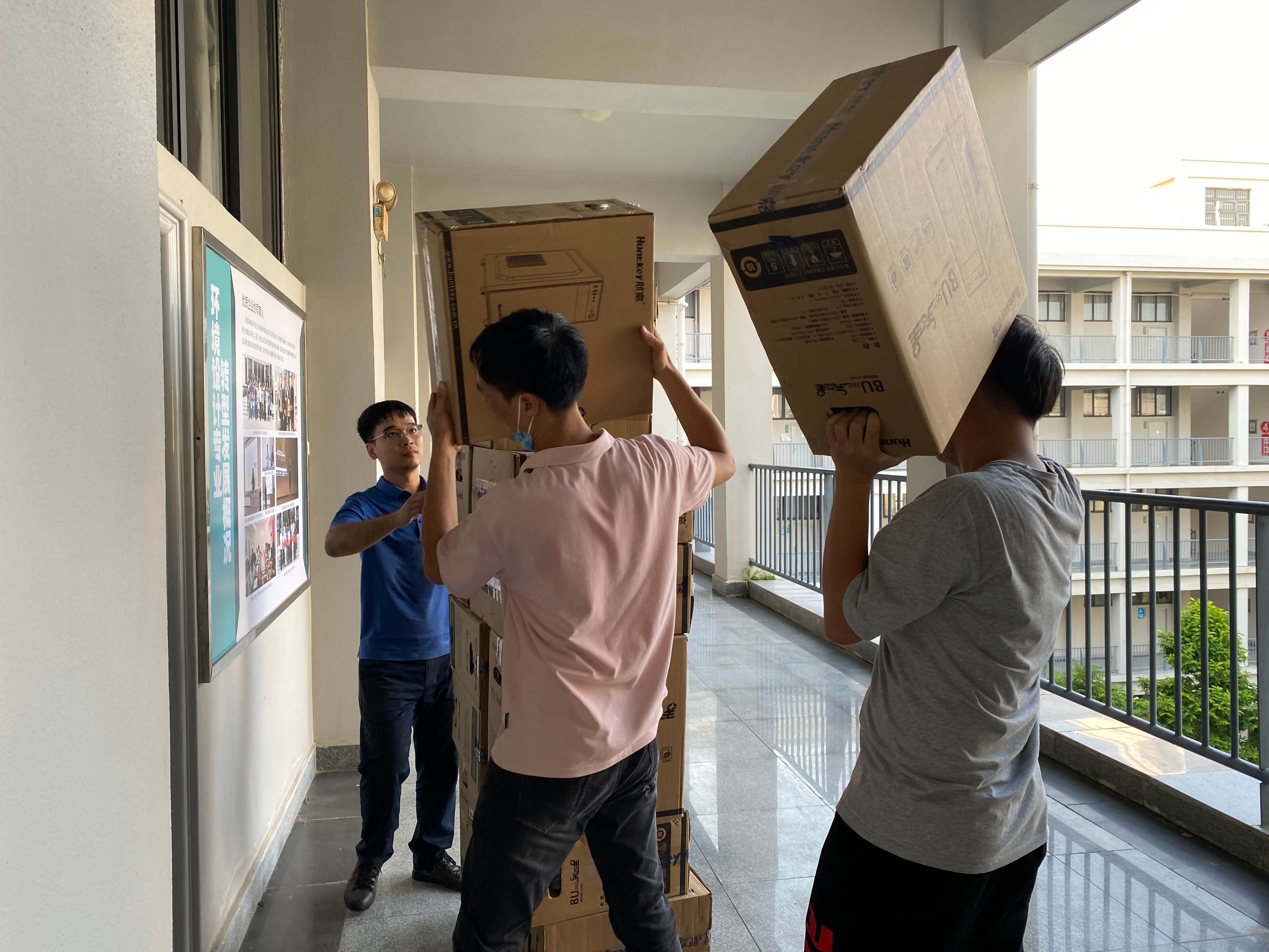 2022年秋季学期,学校采购了大量新电脑等设备,设备与信息处老师们忙碌工作,搬运、消杀、拆箱、安装、配置,忙得不亦乐乎,汗水浸透了衣衫。(黎添祥/摄)