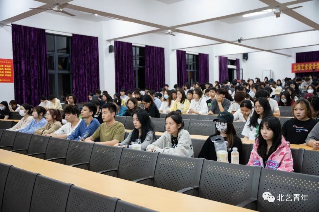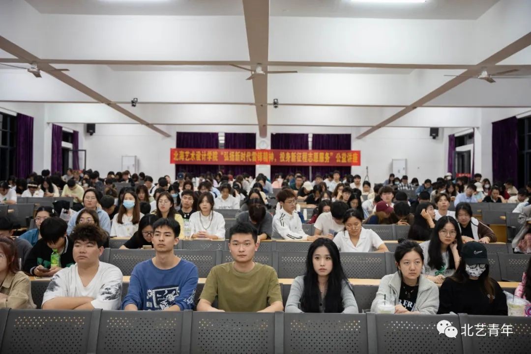 为大力弘扬雷锋精神,凝聚青春奋进力量,北海艺术设计学院3月25日组织6300余名同学学习第四期“弘扬新时代雷锋精神,投身新征程志愿服务”——马誉炜将军《雷锋精神,激励人生》公益讲座,其中有近400名团员学生干部在我校西校区伦理楼107阶梯教室进行线下集中观看。